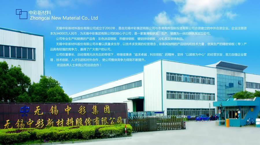 無(wú)錫中彩新材料股份有限公司(原無(wú)錫新大中鋼鐵有限公司)成立于2002年,是由無(wú)錫中彩集團(tuán)有限公司與香港南輝國(guó)際投資有限公司合資建立的中外合資企業(yè)。企業(yè)注冊(cè)資本64000萬(wàn)元,為無(wú)錫中彩集團(tuán)有限公司的子公司, 是一家集薄板研發(fā)、生產(chǎn)、銷(xiāo)售為一體的鋼鐵深加工企業(yè)。 公司占地面積300余畝,資產(chǎn)規(guī)模超20億元,公司主要生產(chǎn)銷(xiāo)售熱鍍鋅鋼板(年產(chǎn)20萬(wàn)噸)、彩鋼板(年產(chǎn)25萬(wàn)噸)、鍍鋁鋅(年產(chǎn)15萬(wàn)噸)、冷軋鋼板(年產(chǎn)60萬(wàn)噸)、鍍錫鋼板(年產(chǎn)16萬(wàn)噸)、熱浸鍍鋁鋼板(年產(chǎn)10萬(wàn)噸)。 公司現(xiàn)有員工580余人,擁有大專(zhuān)以上學(xué)歷員工占總員工的28%以,公司擁有一個(gè)市級(jí)工程技術(shù)中心,一個(gè)省級(jí)工程技術(shù)中心,是國(guó)內(nèi)鋼鐵行業(yè)唯一一家國(guó)家級(jí)實(shí)驗(yàn)中心的中試基地。 |